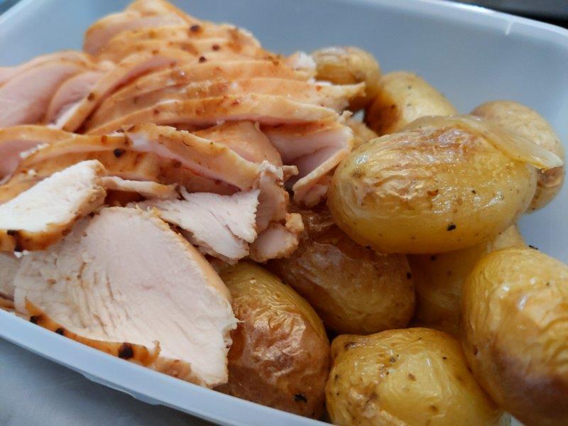 פסטרמה סטייל (פרוסות חזה עוף צלוי) עם תפוחי אדמה קטנים